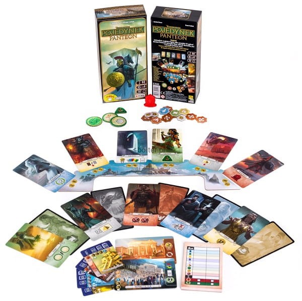 Podczas Ery I będziesz zbierać żetony Mitologii pozwalające wybrać, które bóstwo zamieszka w Panteonie, oraz żetony Darów, dzięki którym zaskarbisz sobie ich przychylność. Później, w Erze II i III możesz obudzić boga lub boginię w Panteonie zamiast dobierać kartę. Jeśli zapewnisz bóstwu to, czego od Ciebie żąda, możesz umieścić je obok swojego miasta.