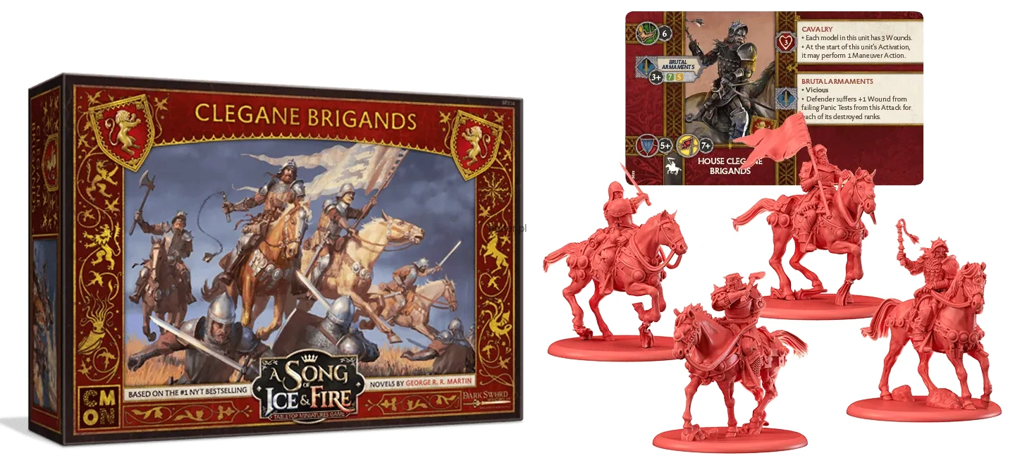 „Góra, która jeździ” Gregor Clegane jest znany ze swojej brutalności w walce. Jednostki wystawiane przez jego ród są podobnie znane ze swojego bezwzględnego postępowania na polu bitwy. Bryganci Clegane’a są jedną z takich jednostek. Nie przejmują się oni tak bardzo szybkim zabiciem przeciwnika, ponieważ łamanie mu kości i powolne torturowanie są znacznie przyjemniejsze. Liczy się tylko to, żeby wróg zaniechał dalszej walki. Ci doświadczeni jeźdźcy wiedzą które walki wybierać i kiedy będą silniejsi od swojej ofiary