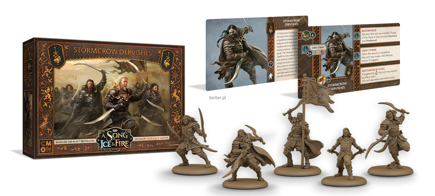 Opłacając na tydzień Derwisza Wron Burzy otrzymujesz zahartowanego, doświadczonego harcownika, który dzięki wysokiej mobilności i umiarkowanemu opancerzeniu będzie świetnie się sprawdzał w uderzeniach na odsłonięte pozycje wroga – ale tylko przez tydzień. Niesławna lojalność Wron Burzy tylko wobec złota to coś, co dotyczy także ich najlepiej wyszkolonych żołnierzy. Jednak ci, którzy zdecydowali się na ich zatrudnienie, rzadko narzekają – Derwisze słyną z miażdżących uderzeń na wroga i szybkiego odskakiwania, zanim oszołomiony przeciwnik zdąży wyprowadzić kontratak.