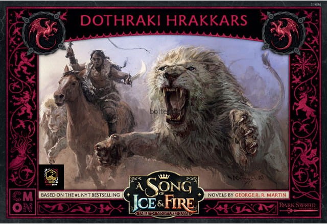 Równie groźne jak wilkory z rodu Starków, Hrakkary, białe lwy zza morza, stoją na szczycie łańcucha pokarmowego w swoim naturalnym środowisku. Zabicie jednego z nich wymaga wielkich umiejętności, ale prawdziwym sprawdzianem dla khala jest ujarzmienie, schwytanie i udomowienie jednej z tych majestatycznych bestii. Jeśli uda się dokonać tego czynu, plemię Dothraków zyskuje niezrównanego sojusznika na polu bitwy.