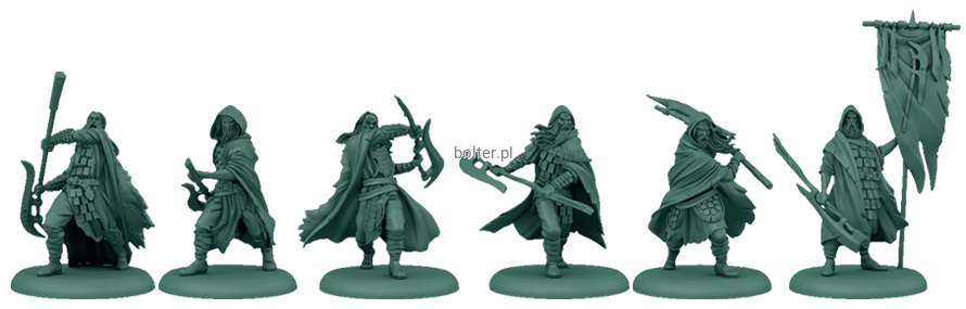 Poza 12 modelami tworzącymi oddział kosiarzy w zestawie znajduje się dodatkowy model Przysiężonego Wojnie wraz z kartą dodatku.
