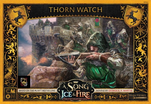 Poza 12 modelami tworzącymi oddział w zestawie znajduje się Strażnik Warty Cierni wraz z figurką i kartą dodatku.