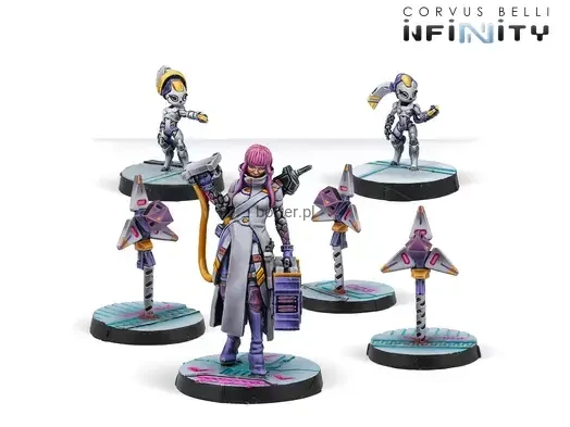 This box includes six miniatures: one Sophotect with Combi Rifle, two Yudbots, and three Netrods. This box is a great complement to provide specialized troops and orders to your ALEPH Force from Operation: Blackwind.