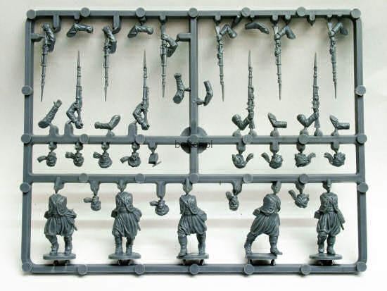 The box has 42 spirited men dressed in their best baggy trousers and fezzes worn in imitation of the French Colonial troops who had established a reputation for dash and glory in closing with the bayonet,and can be used for regiments from both sides.