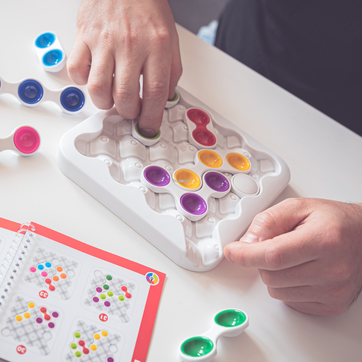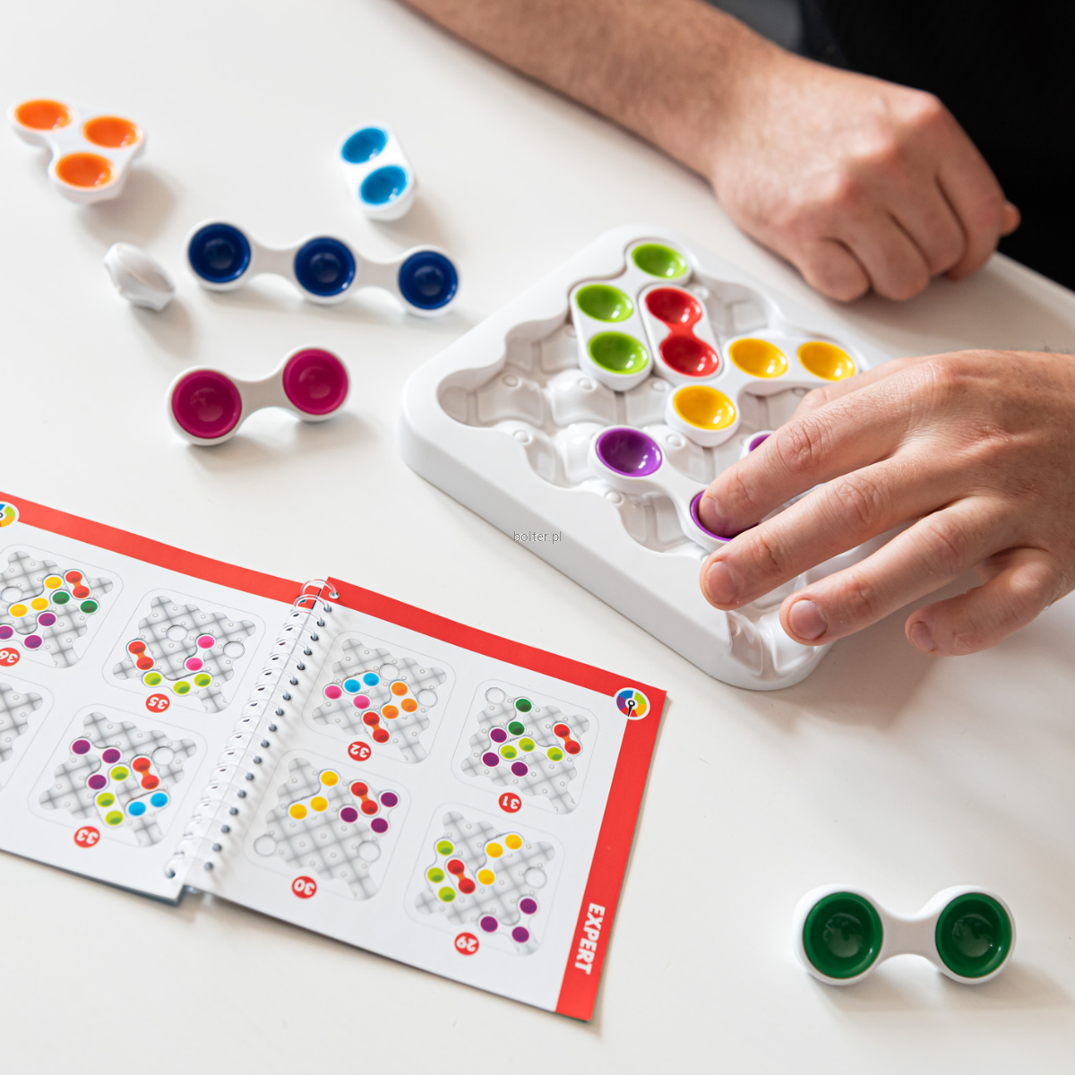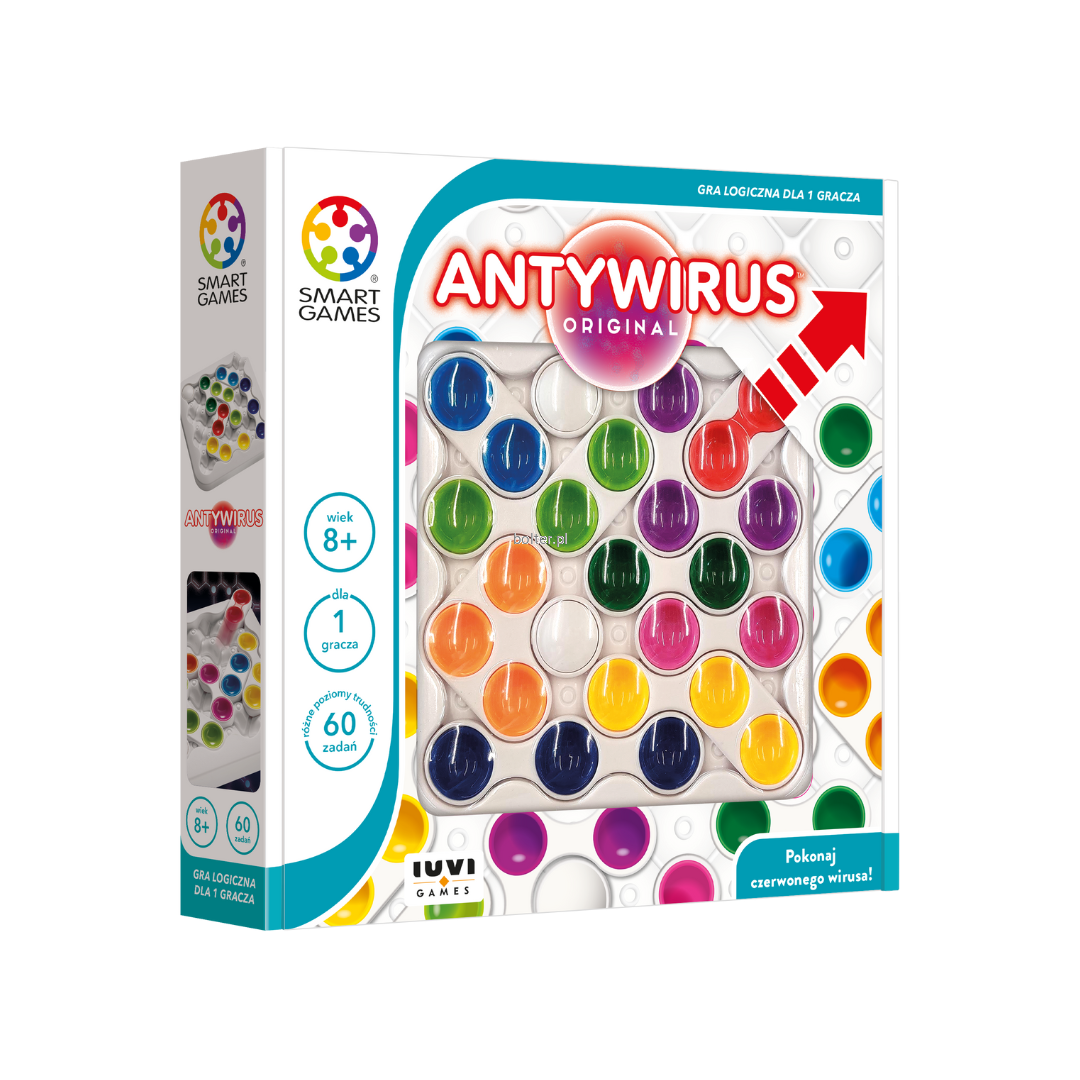 Wśród elementów na planszy zagościł niepożądany osobnik – czerwony wirus. Musisz go zlikwidować, manipulując pozostałymi elementami w taki sposób, aby wyrzucić drania poza grę. Ułatwią Ci to otwory w poszczególnych elementach i na planszy, dzięki którym masz możliwość ich przesuwania. Czasem jednak może zrobić się ciasno i rozwiązanie tego problemu będzie wymagać większej ilości czasu. Czy uratujesz świat SmartGames przed niebezpiecznym wirusem.