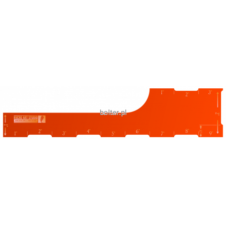 This measuring tool is made of 3mm orange acrylic (fluorescent) that enables a quick check all the most common distances during Age of Sigmar gameplay.
