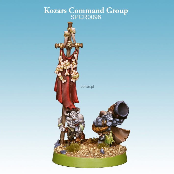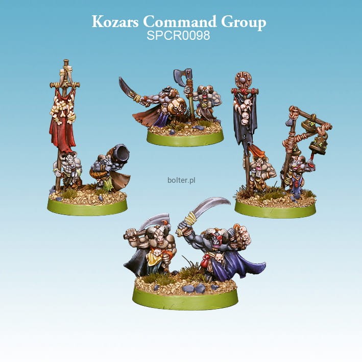 The set contains 8 one-piece high-quality resin miniatures of Kozars – 2x Command Groups, 1x General, 1x Champion and four 25 mm round plastic bases.