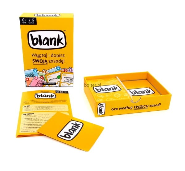 Blank to gra karciana, którą własnymi pomysłami dostosowujesz do tego, co najbardziej lubisz w swoich ulubionych grach: możesz postawić na ekonomię, strategię lub luźną grę imprezową; narzucić wybrany przez siebie temat.