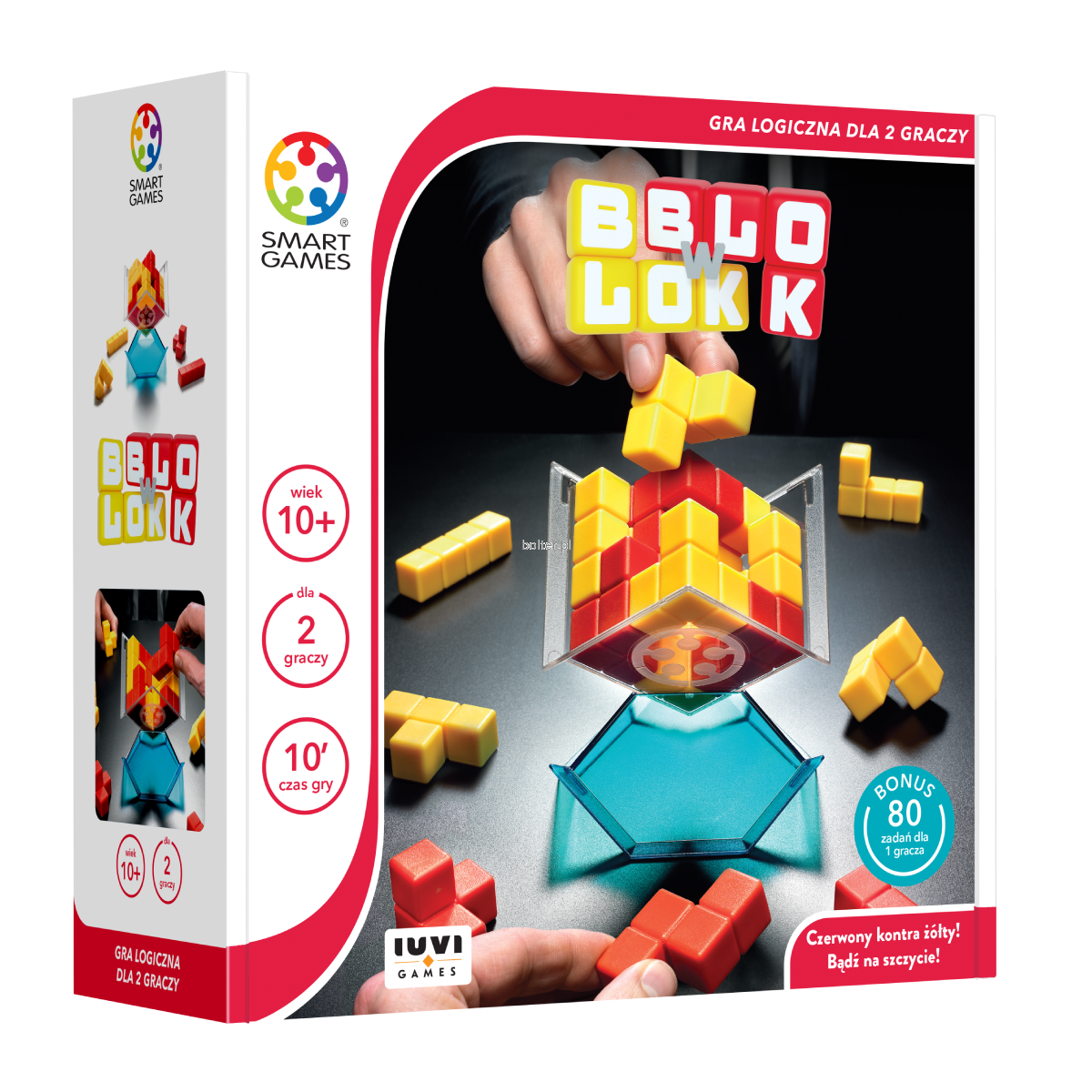Dzięki kompaktowemu wykonaniu i jasnym zasadom, "Blok w Blok" sprawdzi się zarówno w podróży, jak i w ramach domowych rozgrywek. Dwa kolory, dwóch graczy, jedna kostka! Zagraj i udowodnij, że to Ty jesteś najlepszym budowniczym.