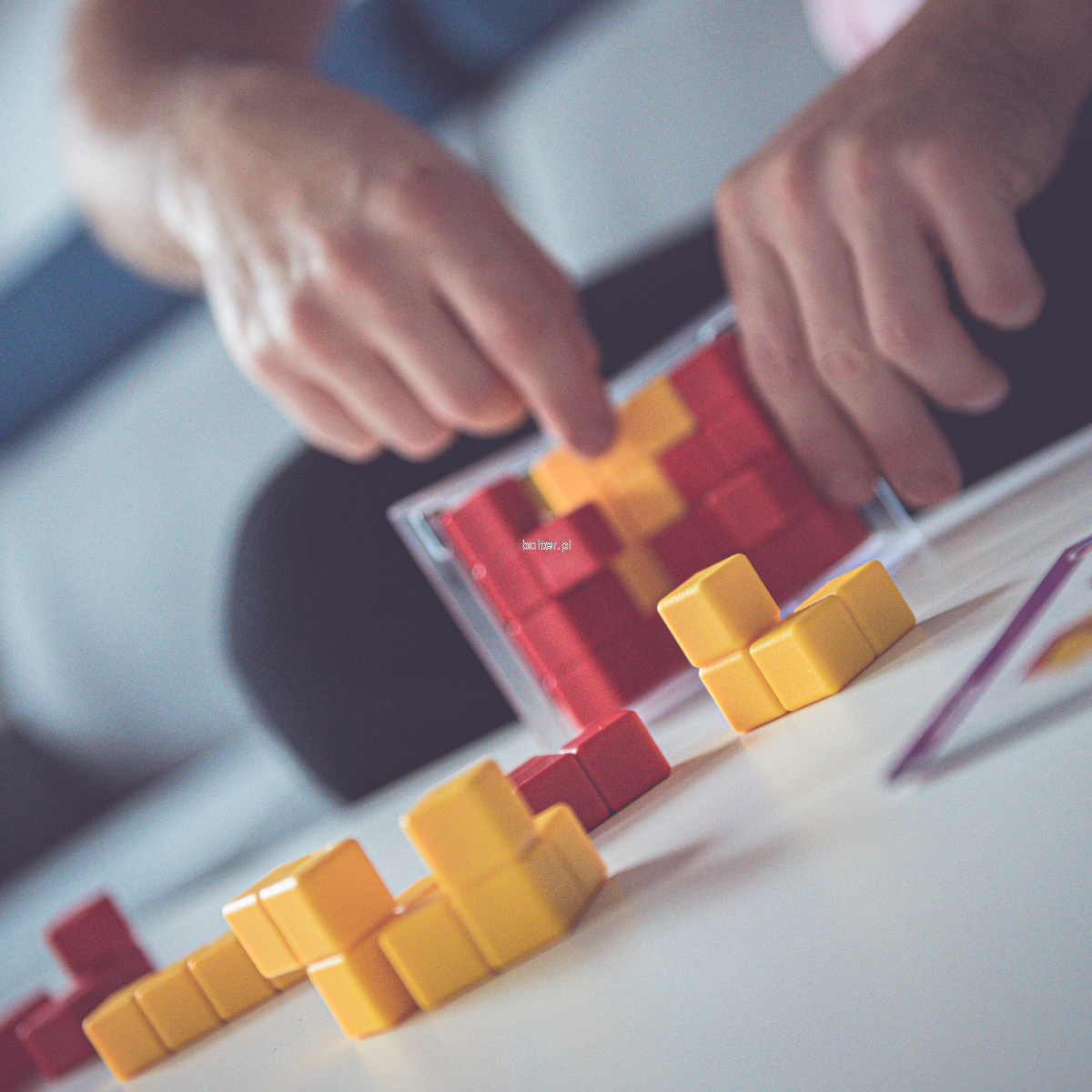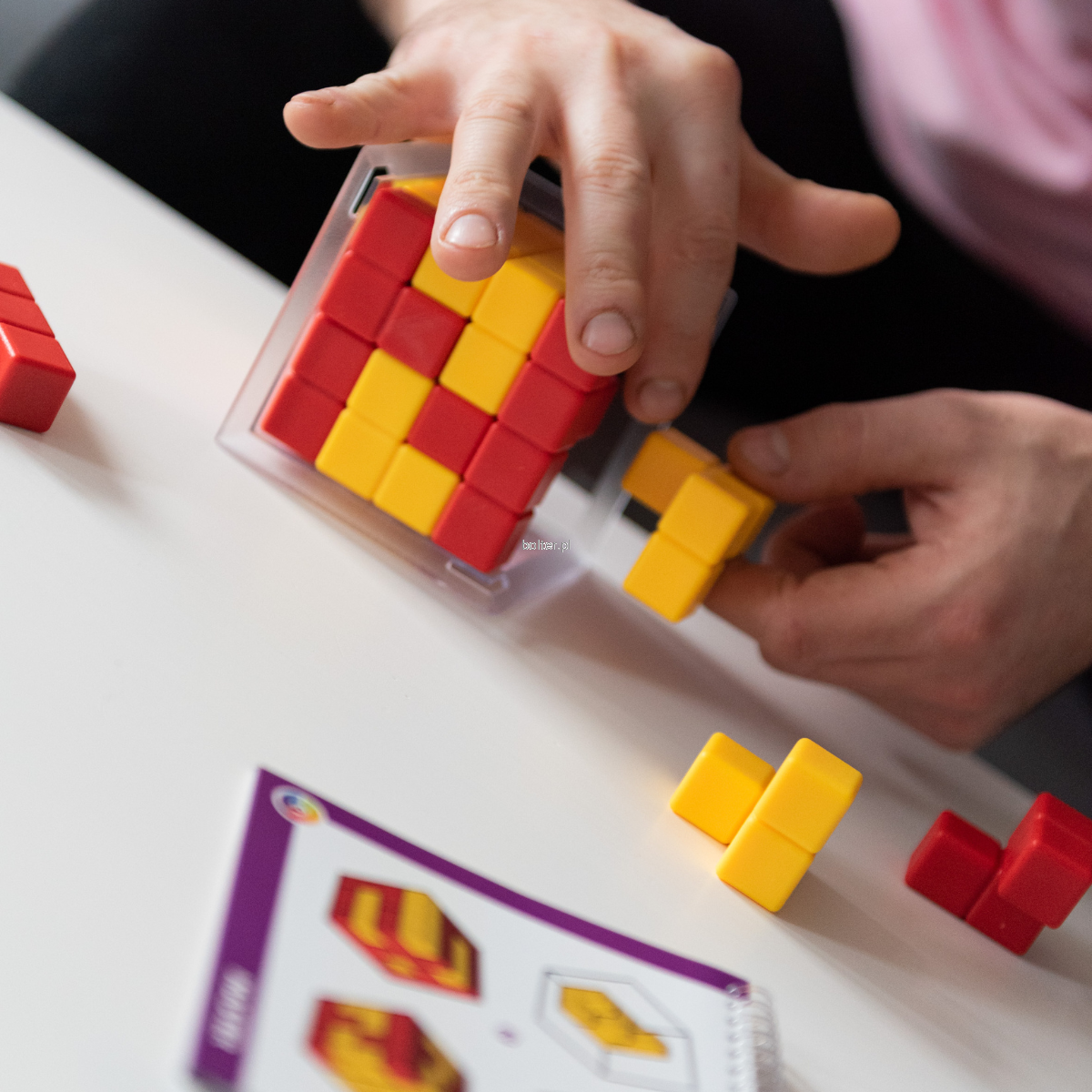 Cel jest prosty: umieścić w kostce klocki w swoim kolorze w taki sposób, aby na końcu były widoczne bardziej niż te należące do przeciwnika. Tylko odpowiednia strategia, połączona z kombinacją ofensywnych i defensywnych ruchów da szansę na zwycięstwo!