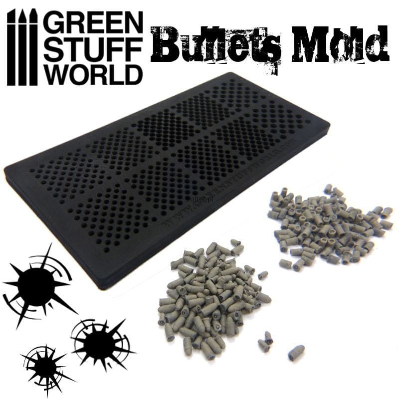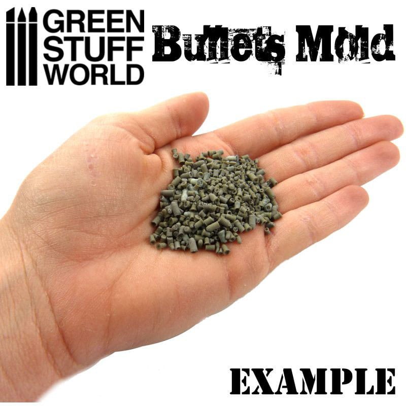 Contains 1 mold with bullets and bullet shells in 5 different sizes (2, 2'5, 3, 4 and 5mm length)