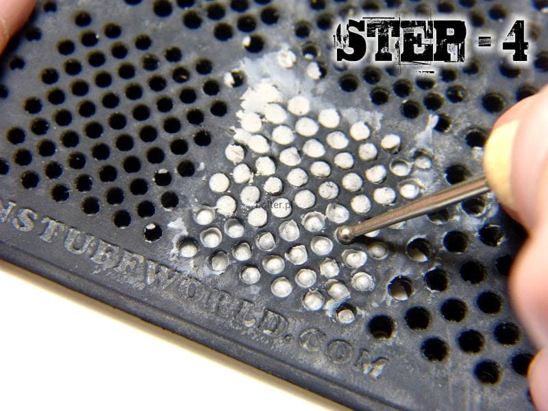 3.- Push the Putty/Clay into the bullets holes of the mold 1 by 1 by using any tool with of round tip or a toothpick.