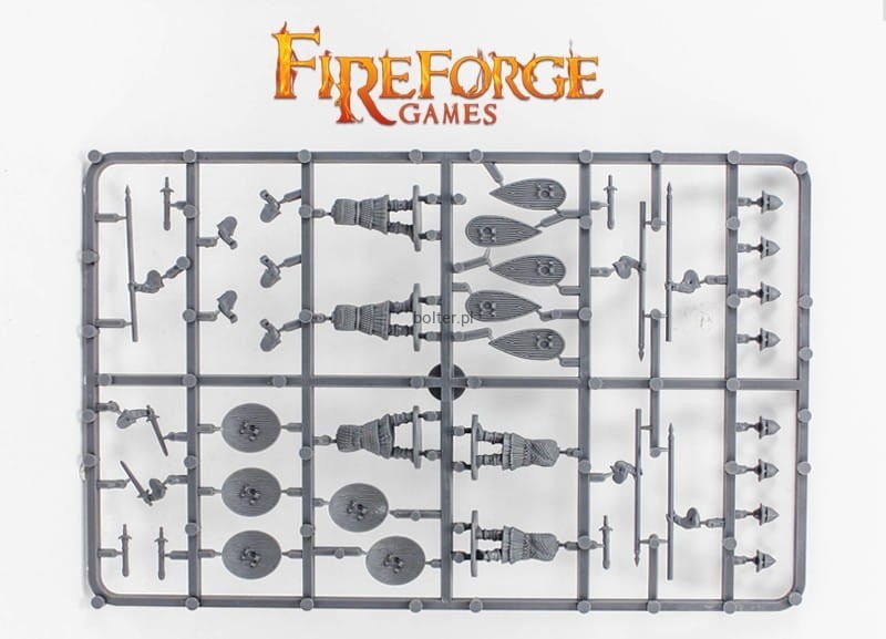 This box enables you to build 25 Byzantine Skoutatoi in heavy armour. You'll be able to build 25 Spearmen, or up to 10 armed with sword and 15 with spear. All the figures in the box can be assembled with two different types of shields, building early or later period byzantines.