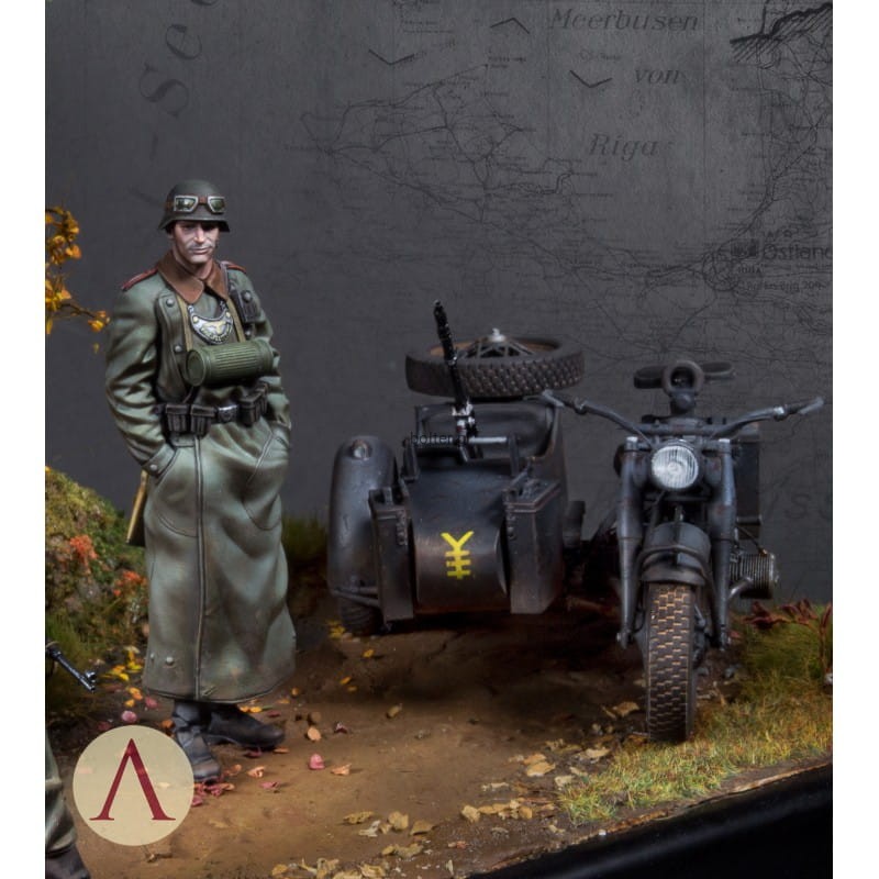 75mm (1:24) kit including motorbike and 2 figures in high quality resin (44 pieces) and white metal (12 pieces).