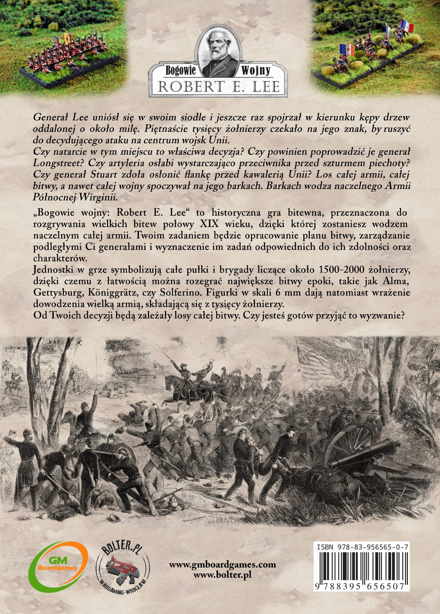 „Bogowie wojny: Robert E. Lee“ to historyczna gra bitewna, przeznaczona do rozgrywania wielkich bitew połowy XIX wieku, dzięki której zostaniesz wodzem naczelnym całej armii. Twoim zadaniem będzie opracowanie planu bitwy, zarządzanie podległymi Ci generałami i wyznaczenie im zadań odpowiednich do ich zdolności oraz charakterów.