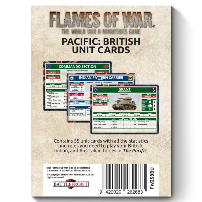 The Pacific British, Australian & Indian Unit Card pack contains 55x Unit Cards