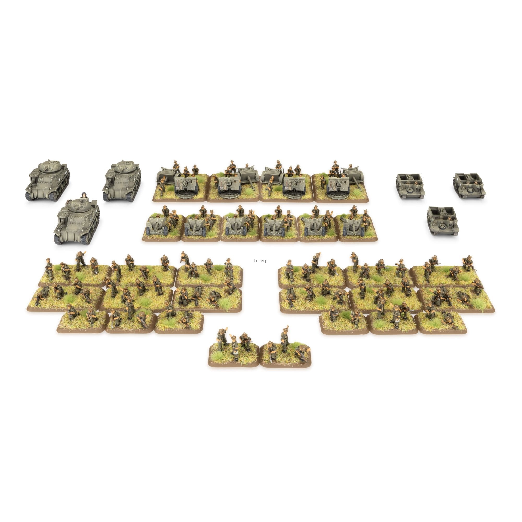 Armia brytyjska to nowoczesna, w pełni zmotoryzowana siła. Niestety, nie jest to idealne rozwiązanie w bujnym terenie dżungli Malajów i Birmy, więc strzelcy musieli polegać na swoich umiejętnościach marszu po trasie, aby się poruszać. Jednak większość brytyjskich żołnierzy jest dobrze zaopatrzona w karabiny i amunicję i może wezwać wsparcie moździerzy, karabinów maszynowych oraz transporterów lub samochodów pancernych. Brytyjskie jednostki w armii indyjskiej miały tendencję do priorytetowego wyposażenia, ale czasami sprzęt nie był dostępny i niektóre jednostki musiały obejść się bez karabinów przeciwpancernych Boys i lekkich moździerzy 2”. Jednak zazwyczaj są w pełni wyposażone w karabiny i lekkie karabiny maszynowe Bren, chociaż zazwyczaj mają tylko bardzo ograniczoną liczbę pistoletów maszynowych (Stens lub Thompsons).