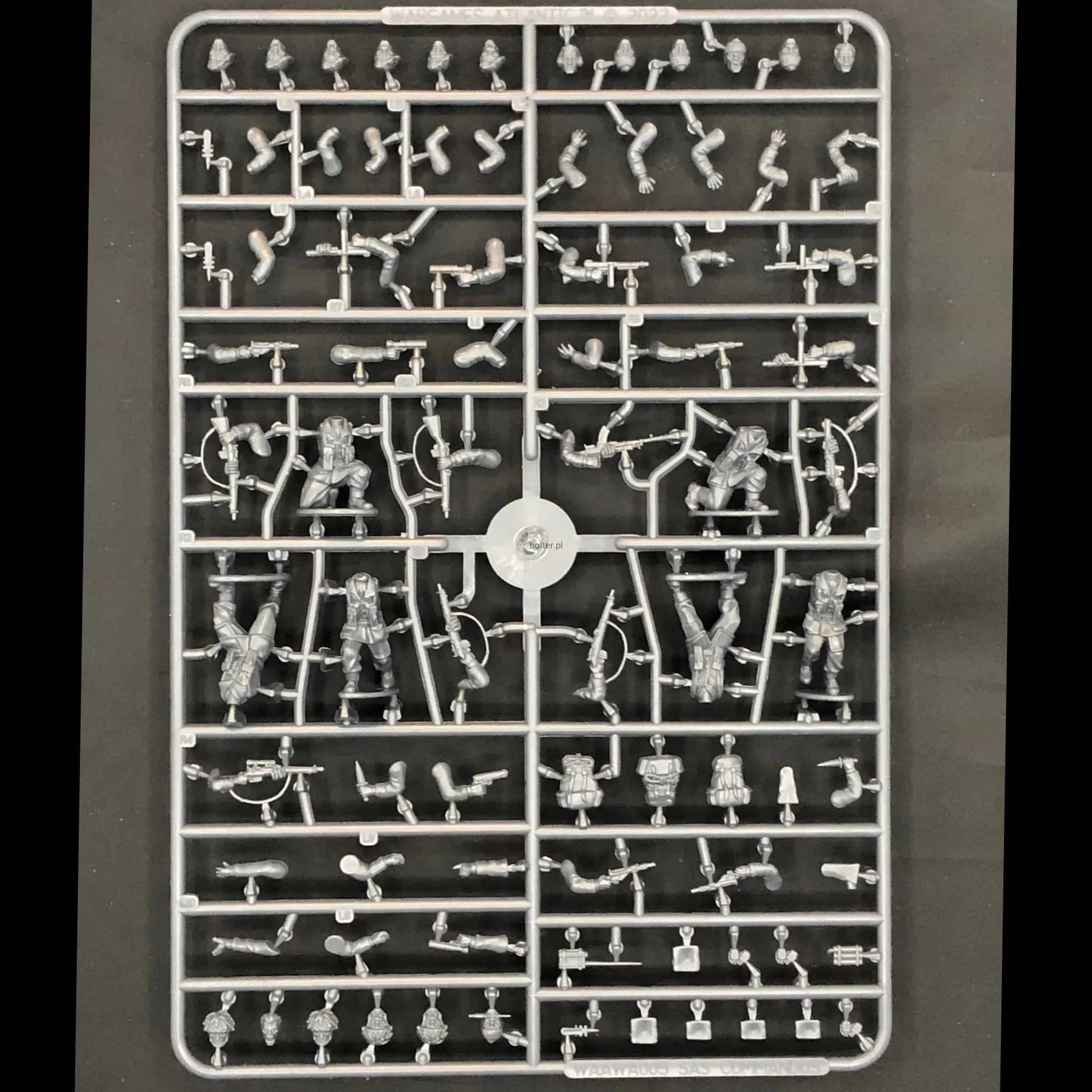 This box set includes enough parts to build 30 SAS, SBS, or Royal Marine Commandos with a variety of headgear. Equipment includes Sten, Bren, and Tommy guns, Lee Enfield rifles, sniper rifles, pistols, knives, a demo charge, and radio equipment.