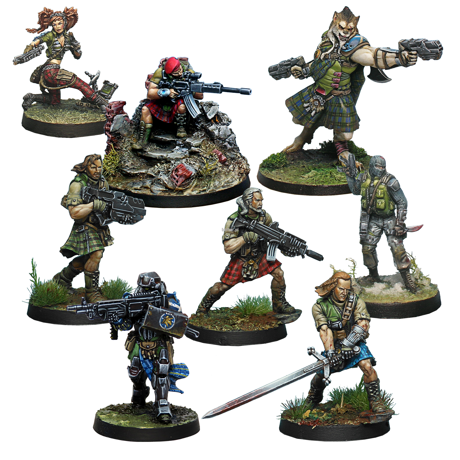 Ten zestaw pudełkowy przywraca wycofane z produkcji figurki z Armii Szokowej Acontecimento. Zawiera osiem metalowych figurek. Jeden 45. Góral z karabinem łańcuchowym, jeden 45. Góral z karabinem, jeden 45. Góral z karabinem AP CCW, jeden Kaledoński Mormaer z AP HMG, jeden Góral S.A.S. z karabinem łańcuchowym, jeden Cameronian z karabinem łańcuchowym, jeden Góral Cateran z karabinem snajperskim T2 oraz postać specjalna – Ochotniczka Wywiadu Isobel McGregor. Uzupełnij swoją armię Caledonian Highlander Repack Alpha (REF: 281551-1244), walcząc jedną niezastąpioną postacią i kwintesencją kaledońskich szturmowców, których taktyka zawsze koncentruje się na ataku, zgodnie z wojowniczą tradycją szkockich klanów.