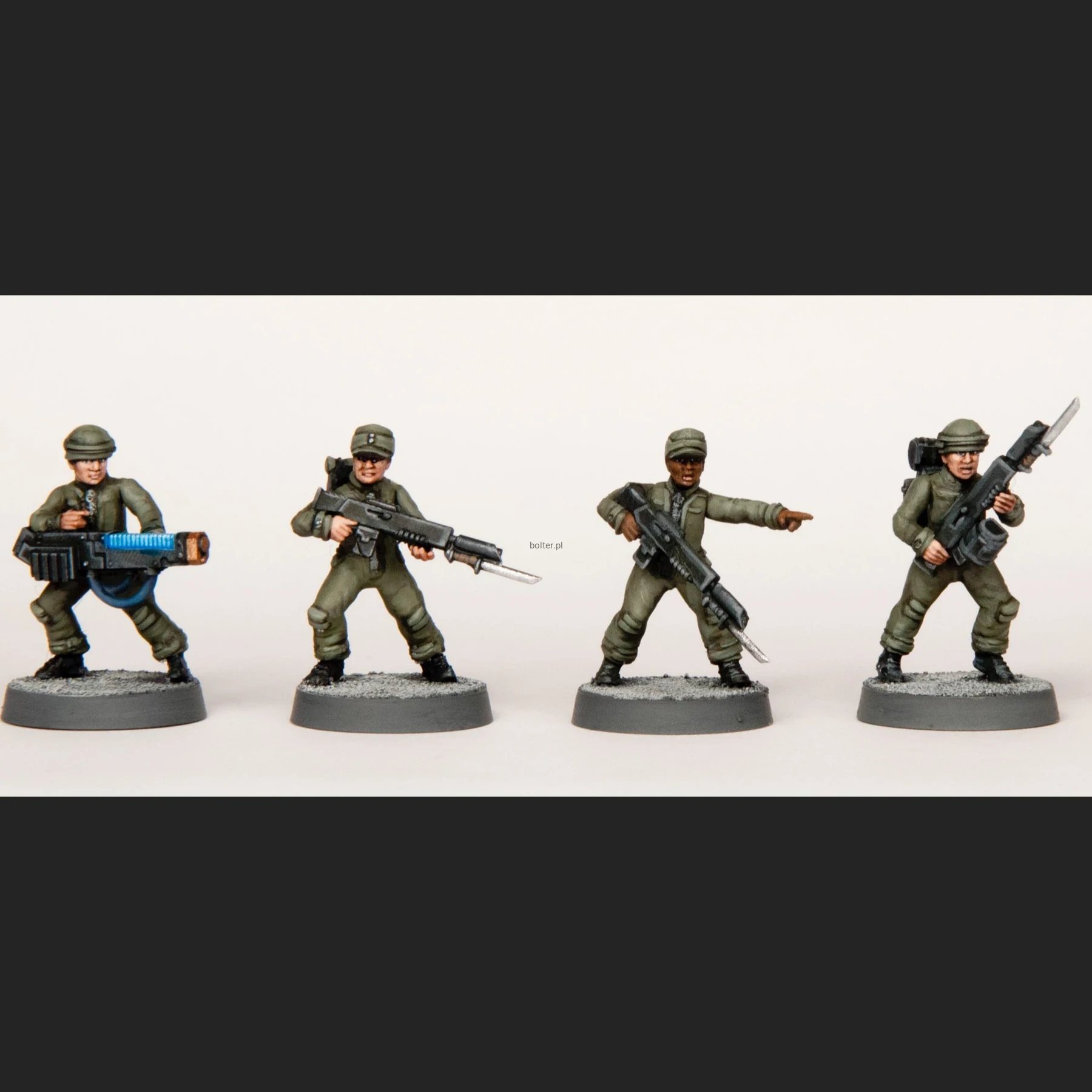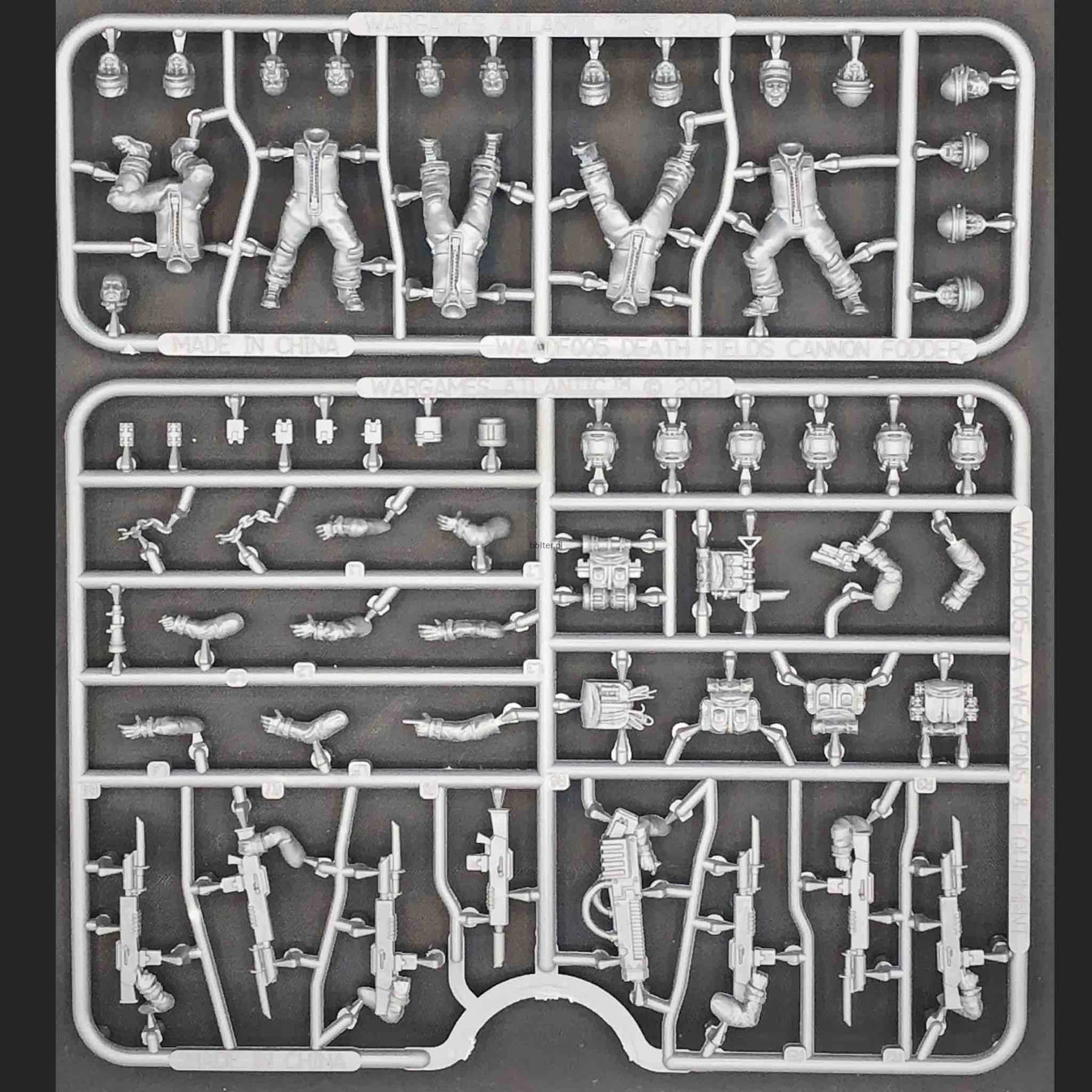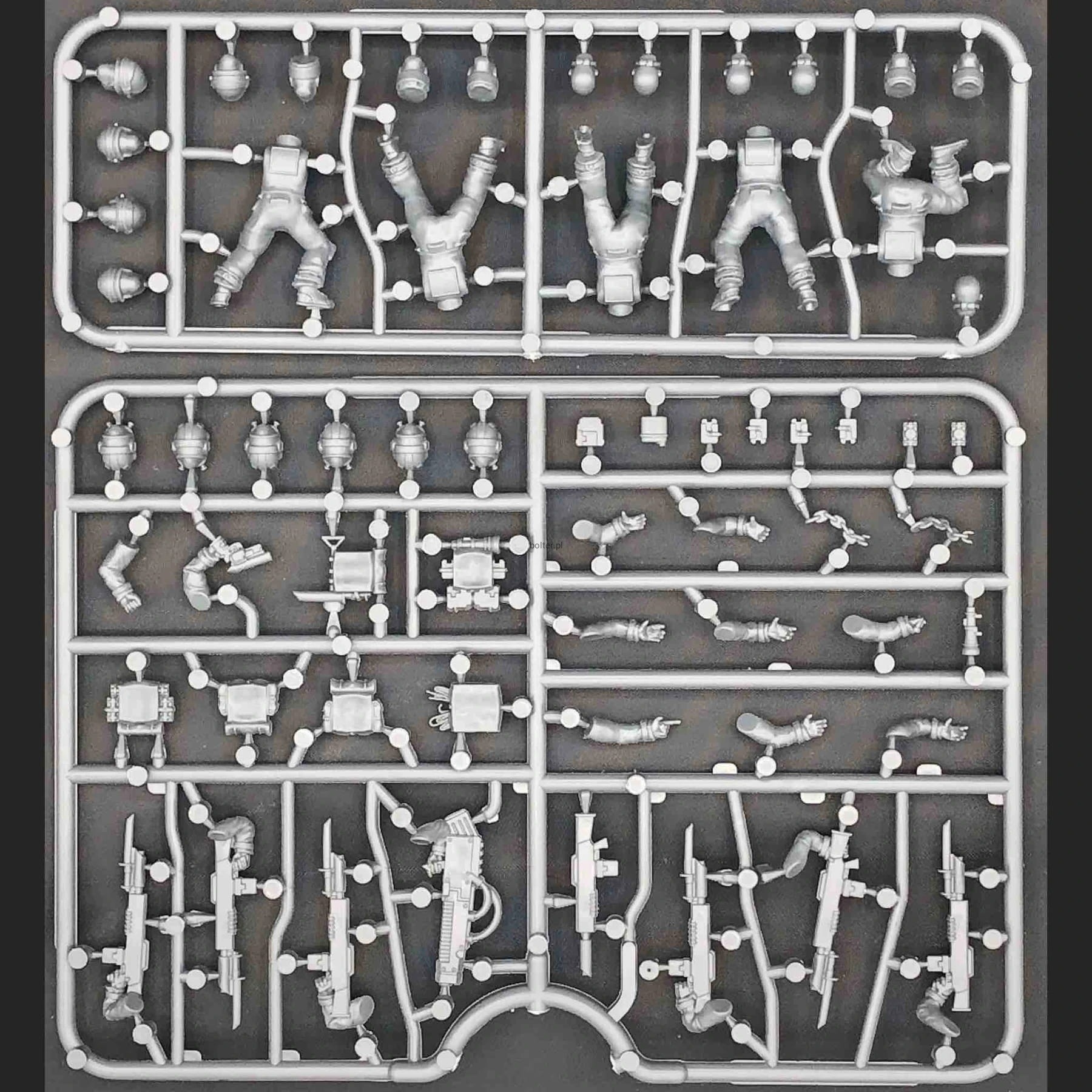 This box set includes enough parts to build 30 hard plastic troops with standard rifles and plasma weapons along with grenades, pistols, backpacks, and other accessories to customize your force. Four different head types allow for very different looks for your team. Alternatively you can use them for planetary or near future militia, escaped prisoners, starship crew, and more.