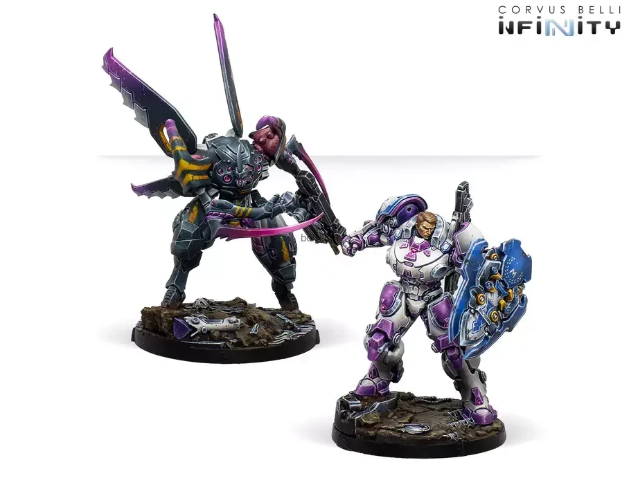 This box includes 2 injected thermoplastic miniatures plus two exclusive scenic bases, one 55mm and one 40mm. Maximus with MULTI Marksman Rifle and a Caskuda with Combi Rifle (AP). Two amazing TAGs to expand your ALEPH or PanOceania collection, and your Combined Army collection.