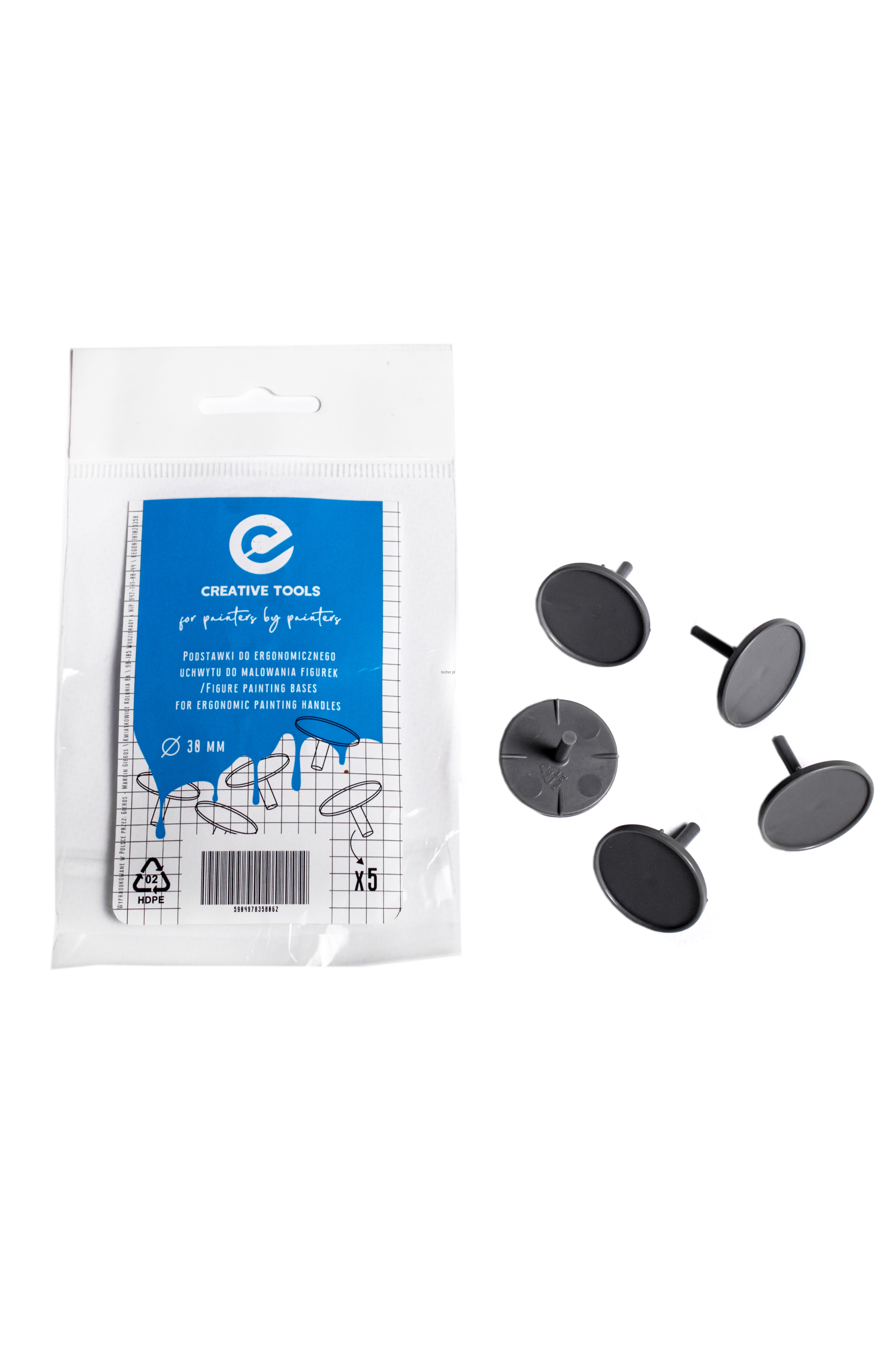 Podstawki do ergonomicznego uchwytu do malowania figurek w rozmiarach 30mm to ważny element wyposażenia dla miłośników modelarstwa i malowania figurek. Podstawki te są kompatybilne z większością systemów figurkowych. Figurki do podstawki przykleić można za pomocą masy plastycznej. Pogrubione ranty ułatwiają precyzyjne obracanie podstawki względem osi uchwytu.