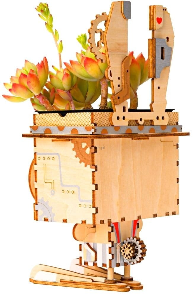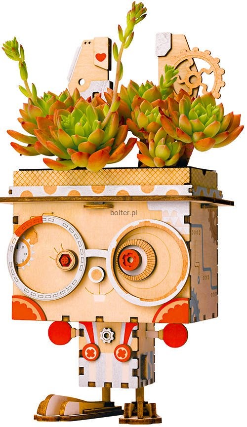 Kolorowa doniczka do samodzielnego złożenia, wykonana z wysokiej jakości sklejki. Zestawy mają postać arkuszy z wstępnie wyciętymi i ponumerowanymi elementami, które przed montażem należy oddzielić od wykroju, a następnie połączyć zgodnie ze szczegółową instrukcją dołączoną do opakowania.