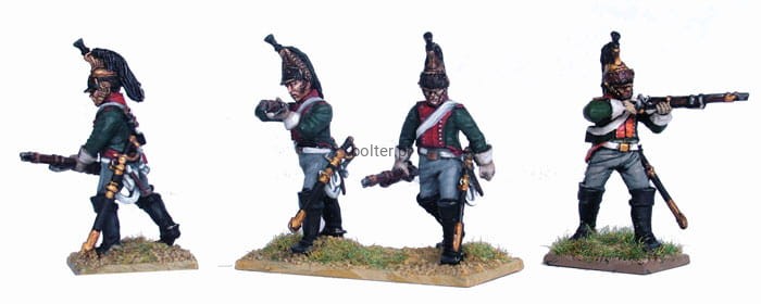 The dragoon's traditional role of dismounting to fire using long musketoons was still on occasion performed, but since 1800 they had evolved into regular cavalry (excluding the 1805-6 period when foot battalions were formed). The box includes mounted and dismounted figures to allow their full range of duties to be represented.