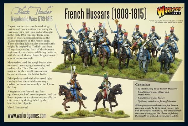 Although a standard unit size for French Hussars would be 12 in most games, this box allows you to make 13 mounted French Hussars, giving you the choice of fielding them with or without command models.