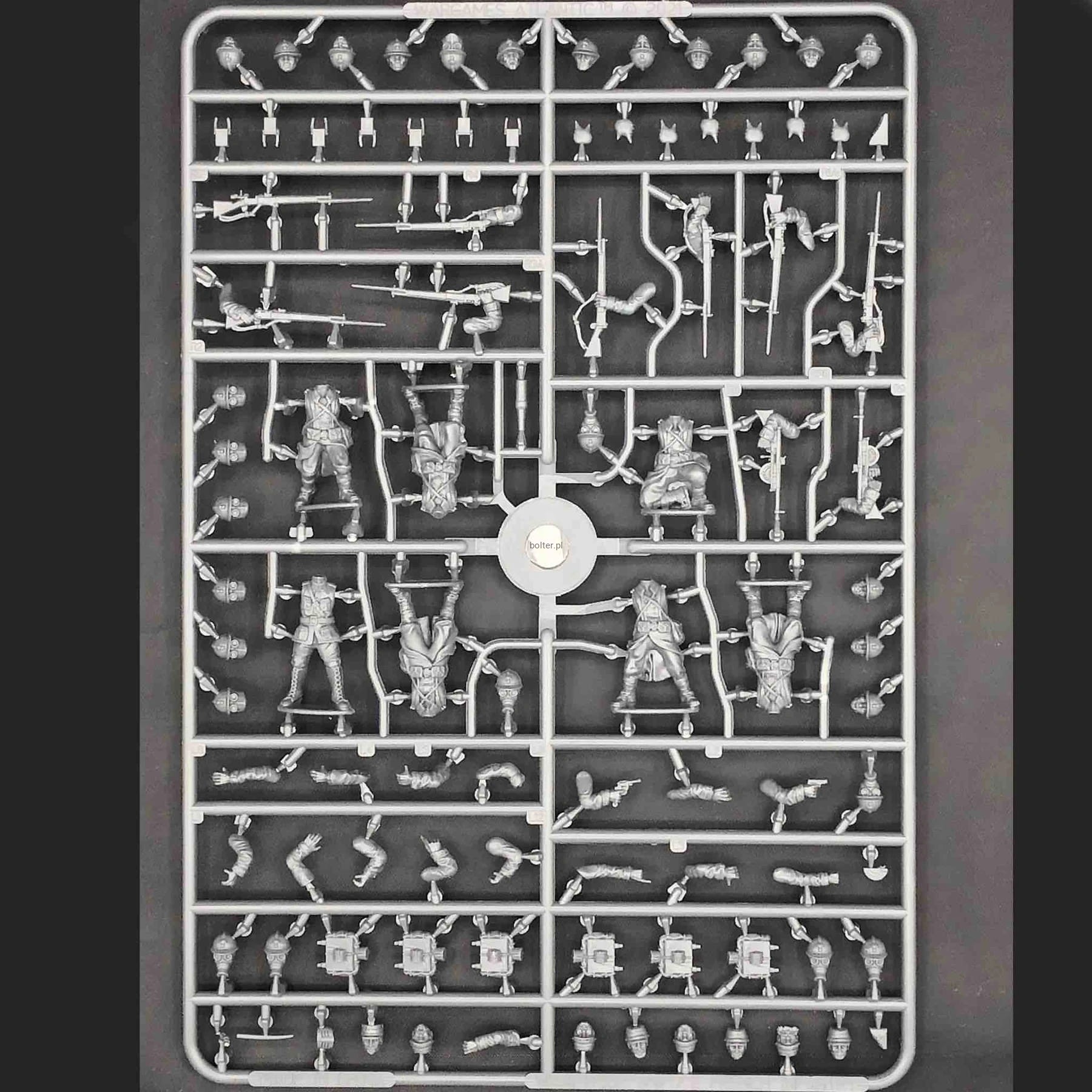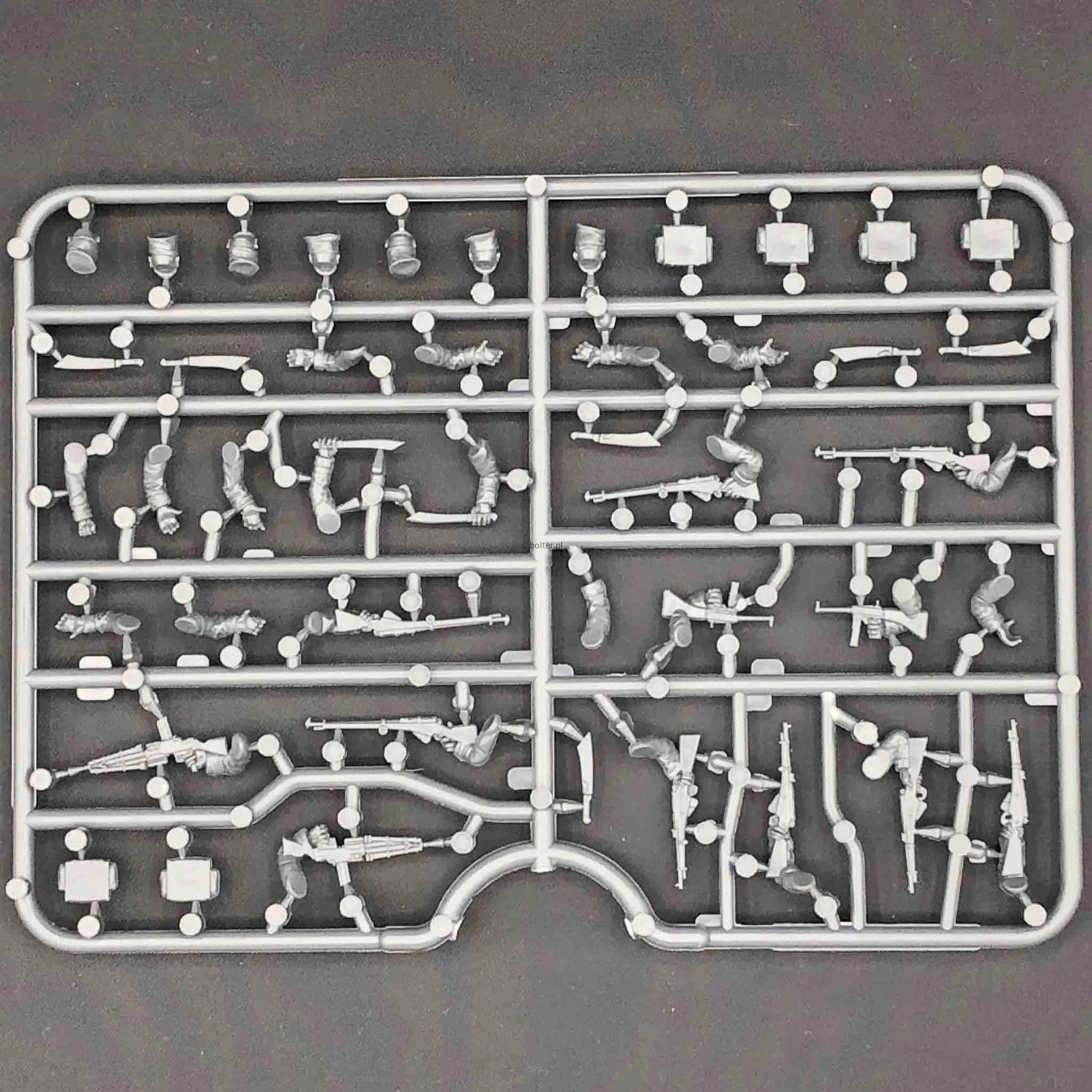 This hard plastic set allows you to build up to 35 French infantry equipped for either World War One or World War Two (with enough of each type of rifle and heads for all figures in the box).