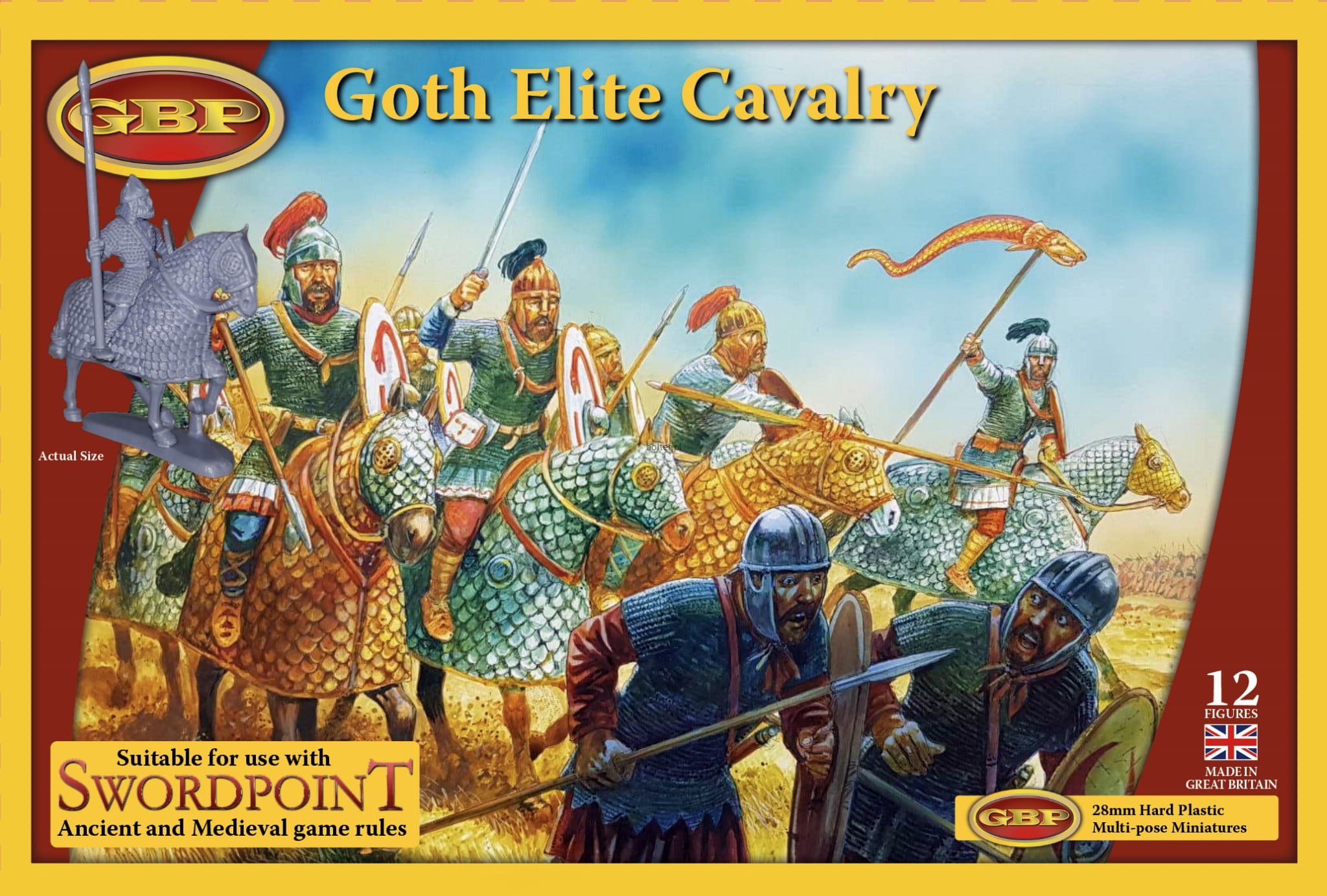 Inside you will find parts to assemble 12 finely-detailed armoured cavalry, fighting with either spear, sword or axe, suitable for use in Swordpoint. The box also includes dracos for conversion purposes. These figures make an excellent centre-piece for your Goth army or aliies for Late Romans. Parts from this box are compatible with most parts from all our other box sets so you can do many, many conversions.