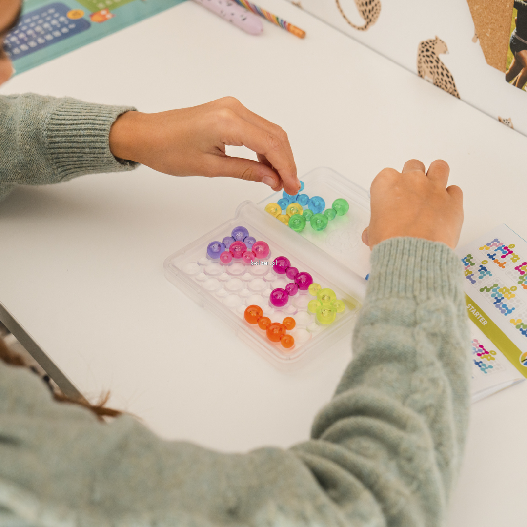 Zanurz się w świat pełen bąbelków! Wybierz zadanie, ułóż element składający się z bąbelków różnej wielkości na przezroczystej planszy i dopasuj pozostałe elementy tak, aby każdy bąbelek znalazł swoje miejsce. Pamiętaj, każde ze 120 zadań ma tylko jedno właściwe rozwiązanie.