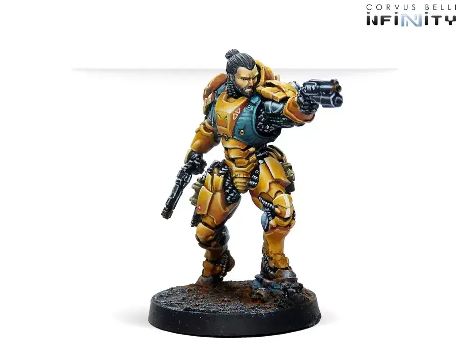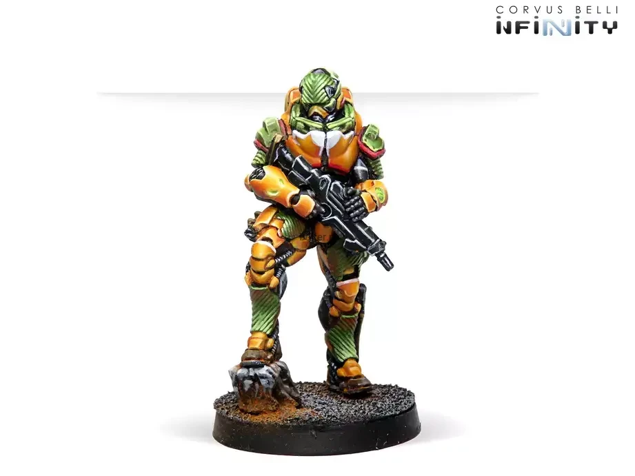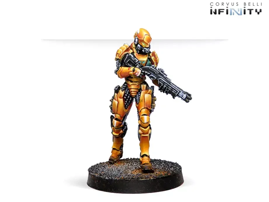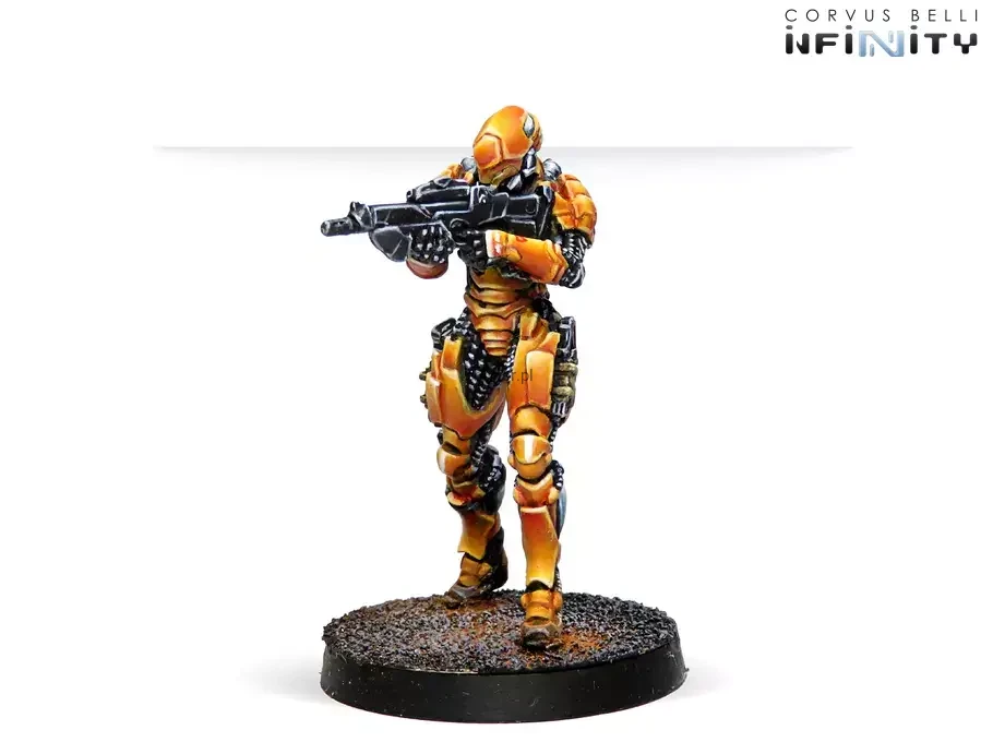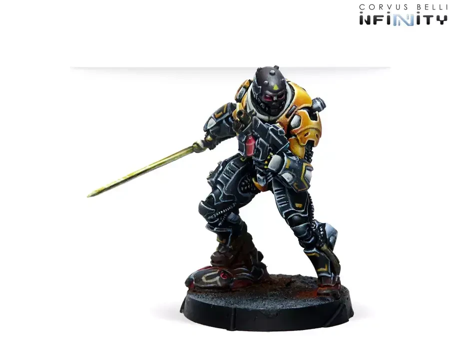 This box includes eleven miniatures: One Zúyŏng with Missile Launcher, one Zúyŏng with Boarding Shotgun, one Zúyŏng with Combi Rifle, one Dāoyīng with MULTI Sniper Rifle, one Liú Xīng Hacker, one Haidào with Combi Rifle, one Krit Kokram, one Húláng with Combi Rifle, one Zhēnchá with Submachine Gun, one Tai Sheng with Breaker Rifle, and one TinBot. The ideal box to start collecting and playing with the mighty Invincible Army.