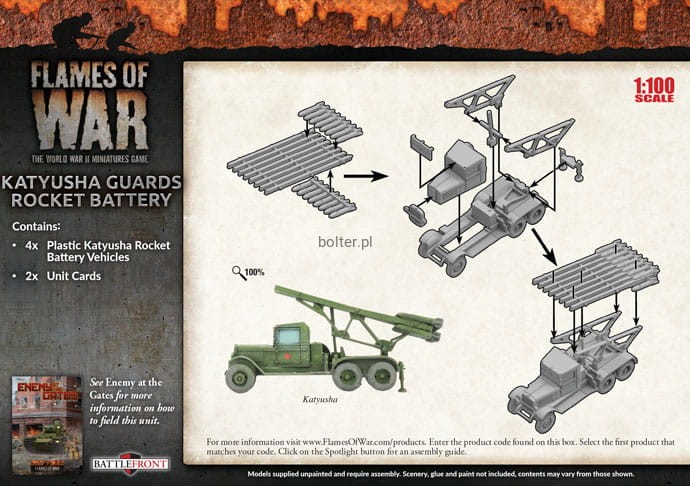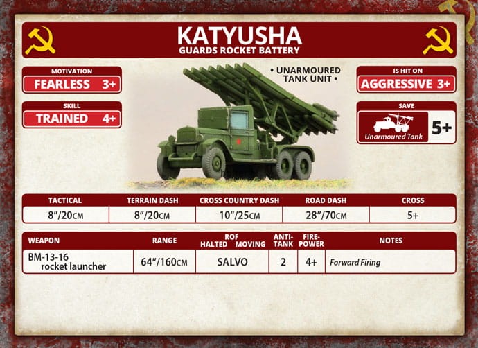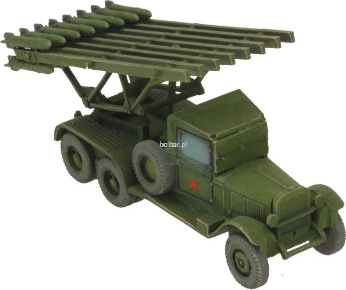 Contains 4 plastic Katyusha self-propelled rocket launchers.
