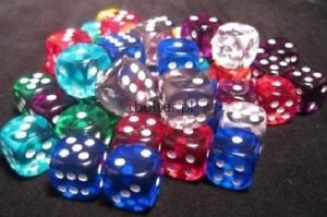 Pół-przezroczysta kostka 6-ścienna do gry firmy Chessex o wymiarze ścianki 16mm.