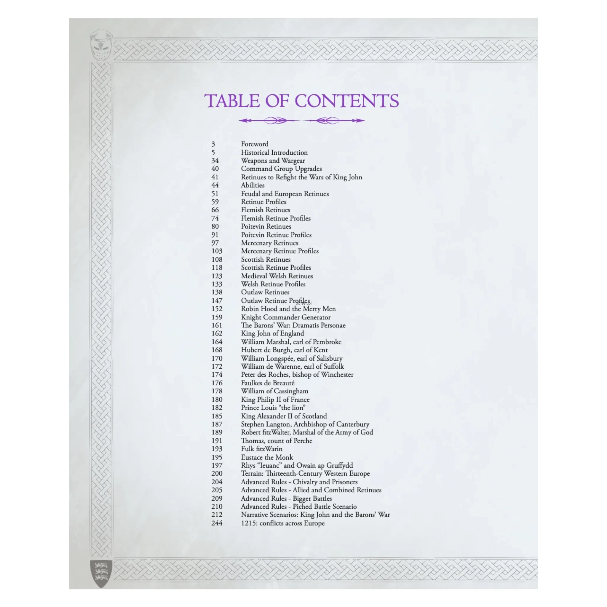 The sourcebook also provides rules and background for a score of the dramatis personae of the story, enabling you to command your troops with the vindictive King John, the chivalrous William Marshal and the scheming King Philip Augustus - or even Robin Hood and his Merry Men.