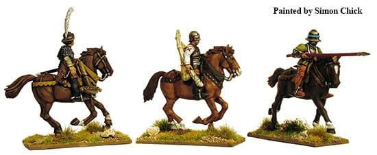 The box contains 12 plastic horsemen that can be assembled with light lances, crossbows or as mounted archers. It also contains parts for command figures, banners and historical information.