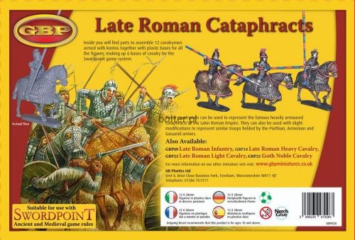 This product contains twelve multi-part plastic Late Roman heavily armoured Cavalrymen mounted on fully cataphract armoured horses.