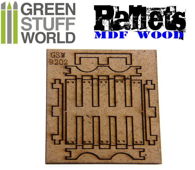 A pack of 8, self-assembly laser cut Shipping Pallets perfect for 25-28-35 mm miniatures (1:76, 1:48, 1:35).