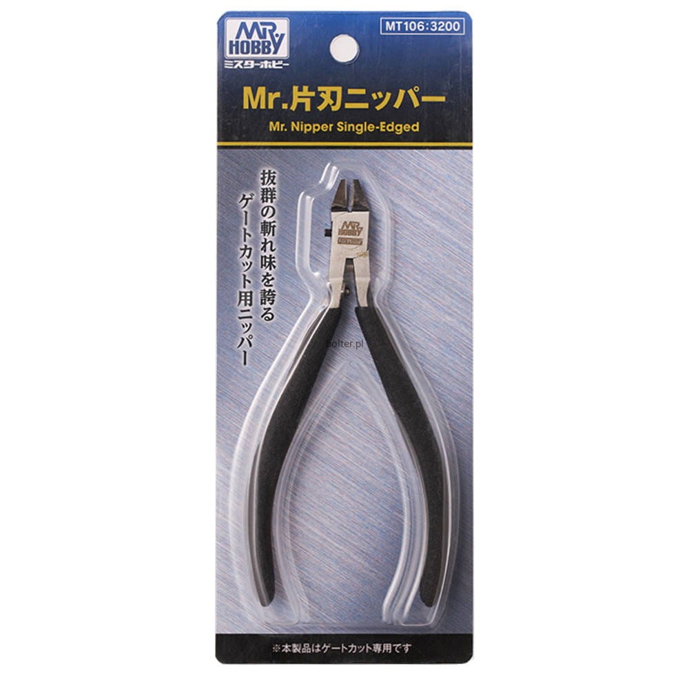 Mr. Nipper Single-Edged Mr. single-edged nippers are pliers for plastic models with a blade on only one side. The blade is thinly finished, so it is ideal for separating precision parts from the gate.