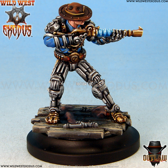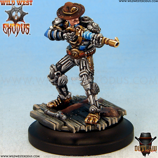 Morgan Earp is the Robotic Cop of the Wild West, once on the brink of death from an attempt on his life, this resilient lawmen has found new life thanks to the secret machinations of Dr. Carpathian. Giving you the option of Morgan Earp in both his recon and battle ready form, this arm of the law brings a strong and hard robotic punch to the outlaws of his town. They fought the law and the law won!