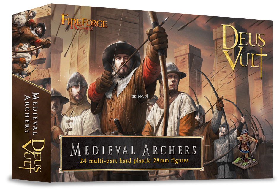 This box set contains twenty-four 28mm multi-part plastic Medieval Archers.