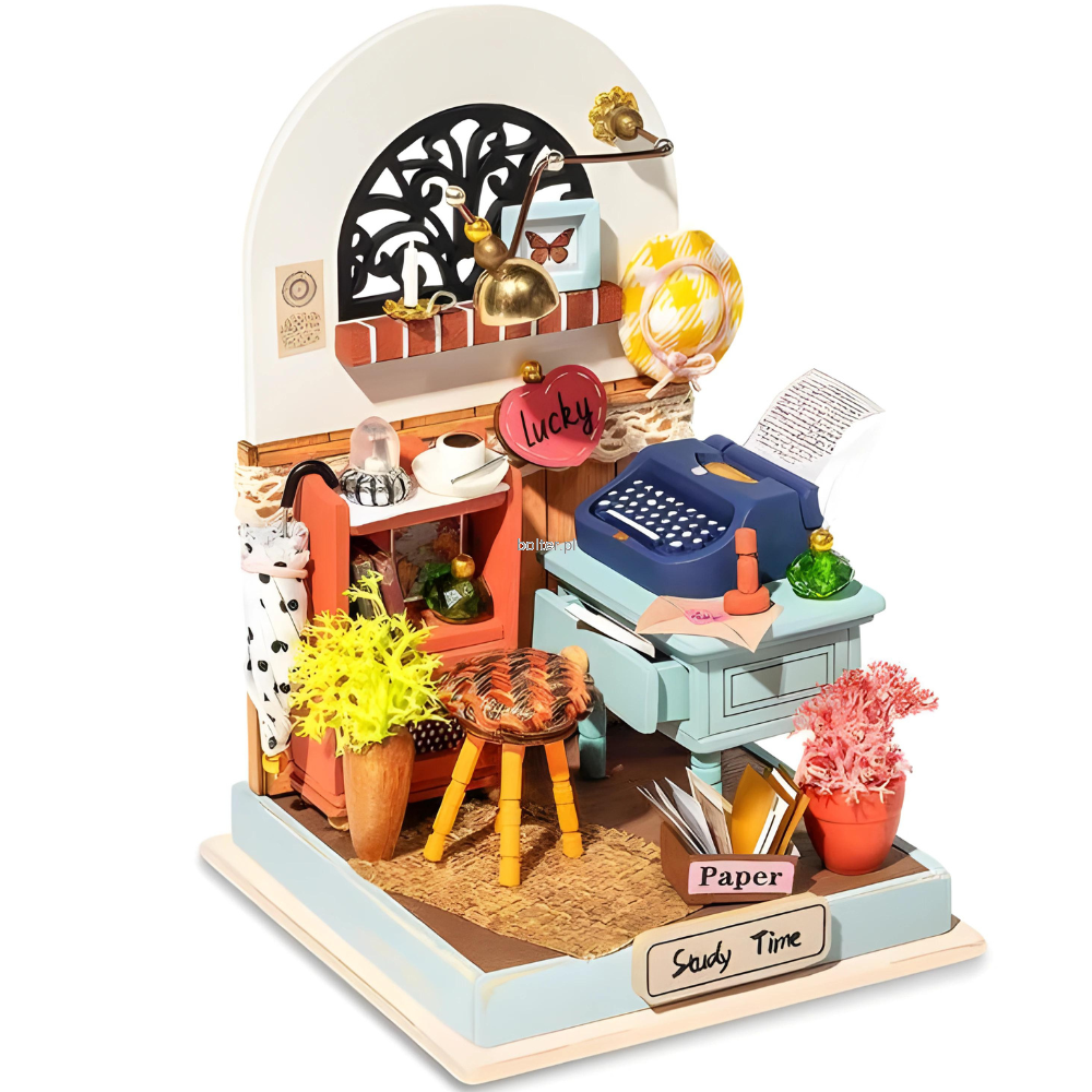 Zestaw umożliwiający złożenie miniaturowej pracowni. Do budowy modelu wykorzystano między innymi drewno, papier, tkaniny, drut, tworzywo sztuczne oraz różne elementy ozdobne takie jak: kolorowe cekiny, koraliki, sztuczne kwiaty oraz wiele innych materiałów. Pracownia jest ciekawie zaprojektowana, posiada wiele drobnych detali, a po złożeniu ma niewielkie rozmiary, dzięki czemu może pełnić rolę oryginalnej dekoracji. Opakowanie oprócz czytelnej, obrazkowej instrukcji zawiera także przezroczysty, bezwonny klej oraz pęsetę ułatwiającą montaż małych elementów. Budowa tego modelu pomoże rozwinąć zdolności manualne i przyniesie dużo satysfakcji.