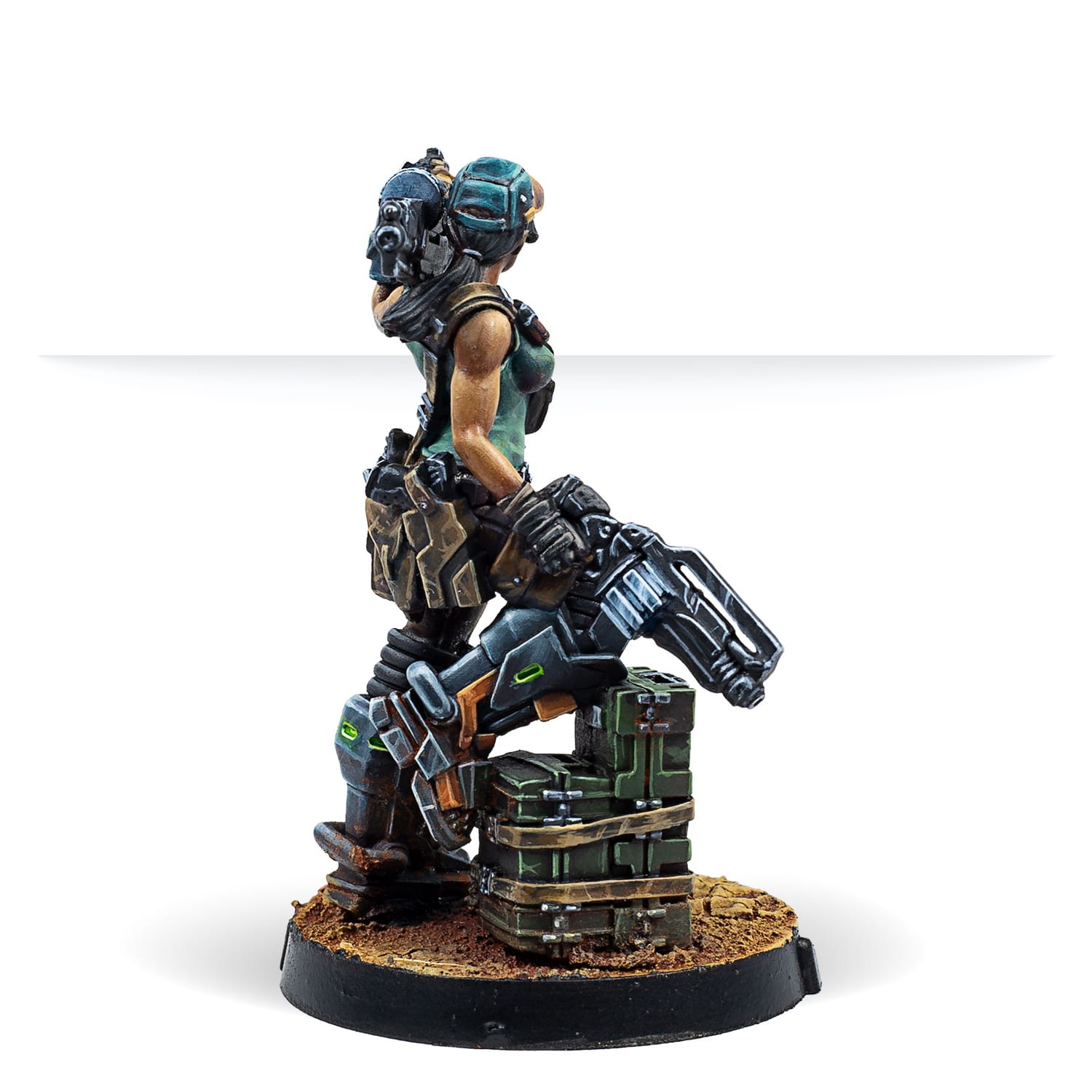 This blister includes a Monstrucker with Boarding Shotgun. Thanks to the Climbing Plus Special Skill, no obstacle can stop this Engineer. This mercenary Trooper will be a great addition to your NA2, Haqqislam, or Ramah Taskforce army list.