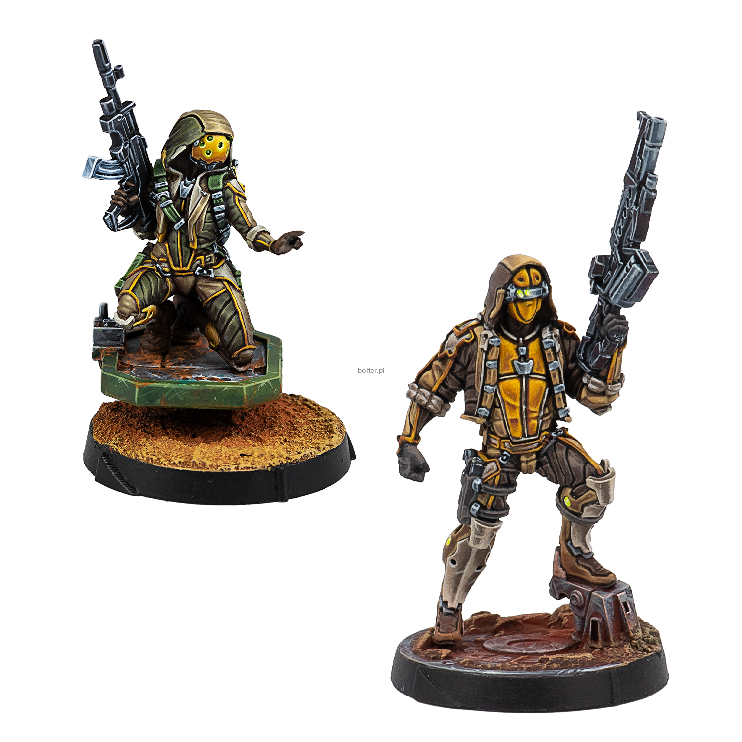 This box includes two miniatures: 1 Mukhtar Hacker, and 1 Mukthar with Red Fury. Their high mobility and Forward Deployment Special Skill will provide to your Haqqislam force (REF: 281408-0844) an impressive ability to maneuver around the game table.
