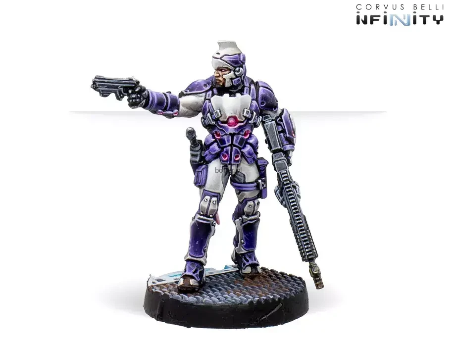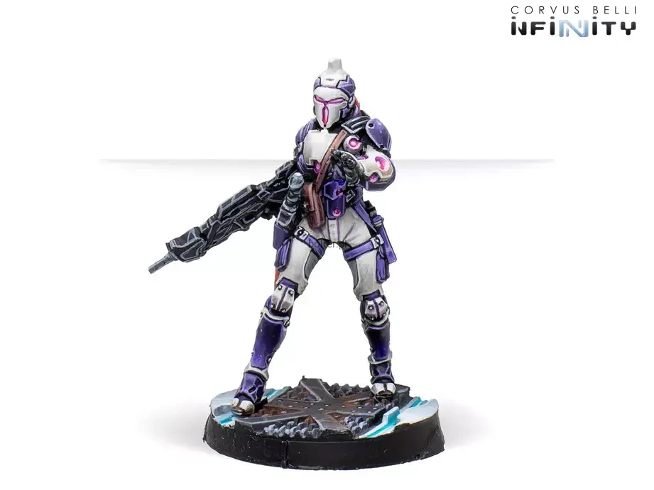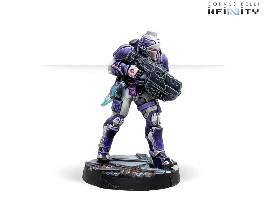 This box includes four miniatures. One Myrmidon with Combi Rifle, one Myrmidon with Chain Rifle, one Myrmidon Hacker, and one Myrmidon Officer with Boarding Shotgun. The ideal box to have a shock unit in your ALEPH army and to create a Fireteam in your Steel Phalanx’s lists, complementing your Battle Pack Operation Blackwind.
