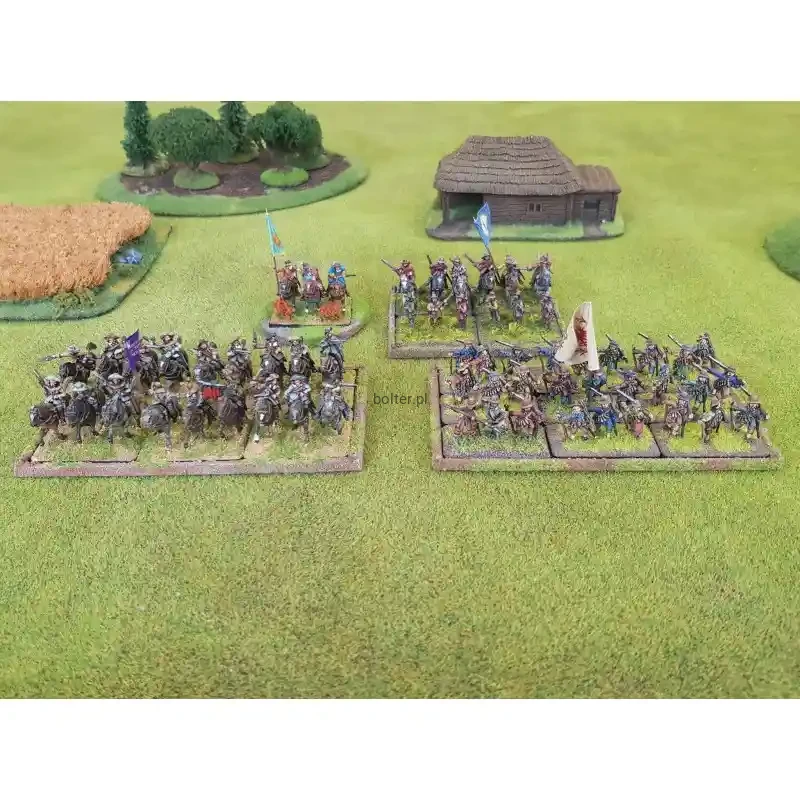 Wszystkie jednostki znajdujące się w zestawie posiadają podstawki i tacki oraz w przypadku używających ich jednostek - także włócznie/piki i sztandary. Modele żołnierzy wykonane są z metalu, konie z plastiku. Modele wymagają sklejenia i nie są pomalowane. Zawartość może różnić się od tej prezentowanej na zdjęciu.