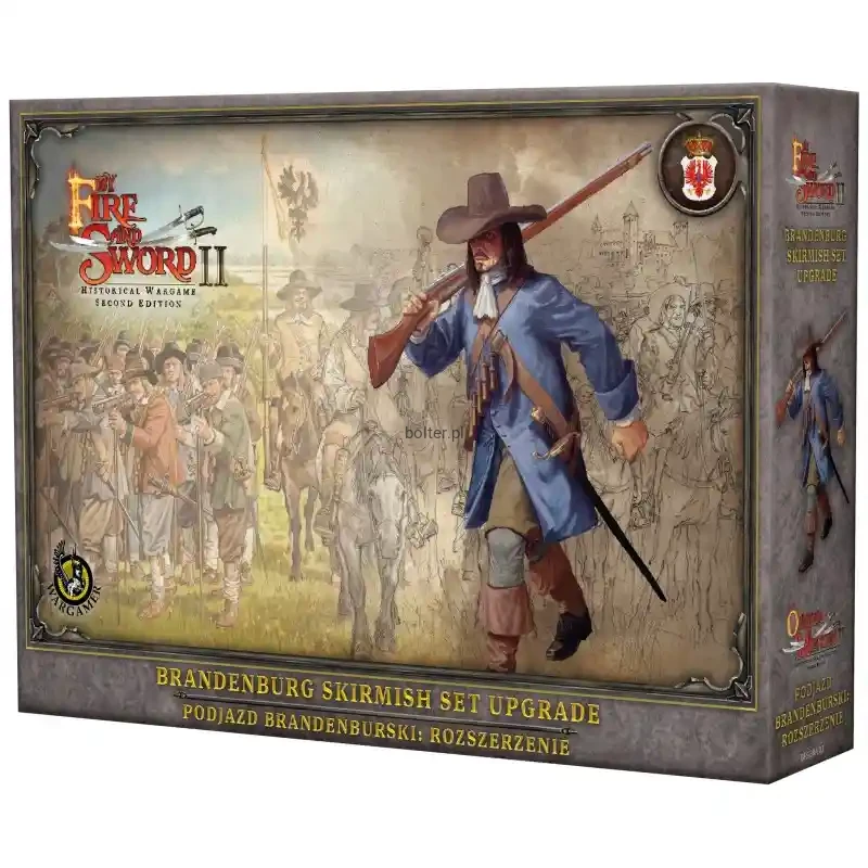 Zestaw ten pozwala na rozwinięcie zestawu Podjazd Brandenburski w Zgrupowanie Obrony Terytorialnej 1648-1660. Znajdziecie tu trzy dodatkowe Jednostki: RAJTARÓW NAJEMNYCH, MUSZKIETERÓW PRUSKICH oraz DRAGONÓW PRUSKICH. W pudełku znajduje się także podstawka brandenburskiego dowódcy oraz zestaw kart Ulepszeń - wszystko, czego potrzebujecie, żeby rozegrać bitwę na poziomie Zgrupowanie!
