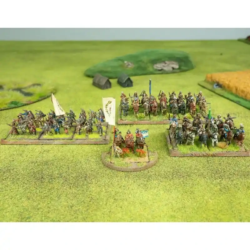 Wszystkie jednostki znajdujące się w zestawie posiadają podstawki i tacki oraz - w przypadku używających ich jednostek - także włócznie/piki i sztandary. Modele żołnierzy wykonane są z metalu, konie z plastiku. Modele wymagają sklejenia i nie są pomalowane. Zawartość może różnić się od tej prezentowanej na zdjęciu.