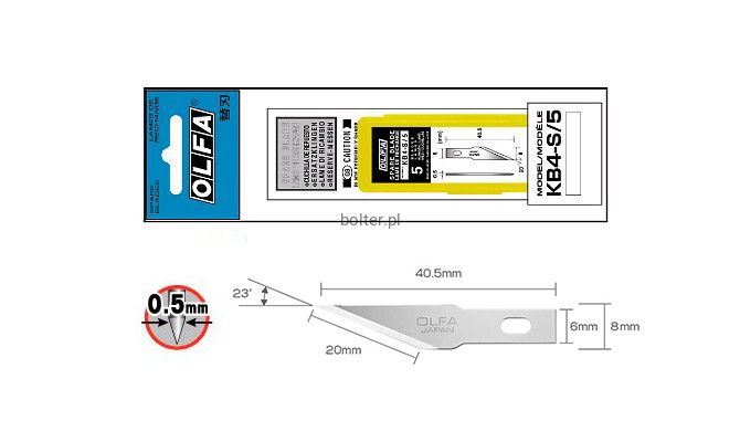 Opakowanie o symbolu KB4-S/5 zawiera 5 ostrzy w plastikowym pudełeczku i woreczku foliowym.